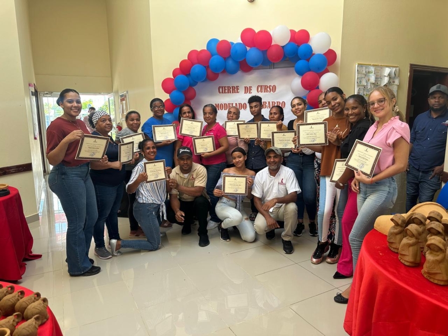 Villa Riva, provincia Duarte, Rep.Dom.-La Dirección de Fomento y Desarrollo de la Artesanía Nacional (FODEARTE) en coordinación con la Fundación Padre Rogelio y el Centro Tecnológico Comunitario (CTC ) de Villa Riva, culmina con éxito el Taller de Formación Artesanal Básico en el rubro de Alfarería.