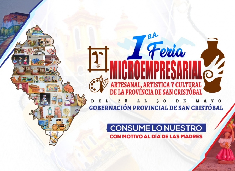 1RA feria microempresarial artesanal, artística y cultural de la provincia San Cristóbal, Creada con el objetivo de promover a los artistas de la provincia San Cristóbal, ya que durante estos tiempos de pandemia no hemos visto afectados también por la falta de comercialización. Por lo que a través de la exhibición y venta de los productos local nuestras autoridades y público general conozcan y consuman lo nuestro, a propósito de un día tan especial como es el día de las madres.