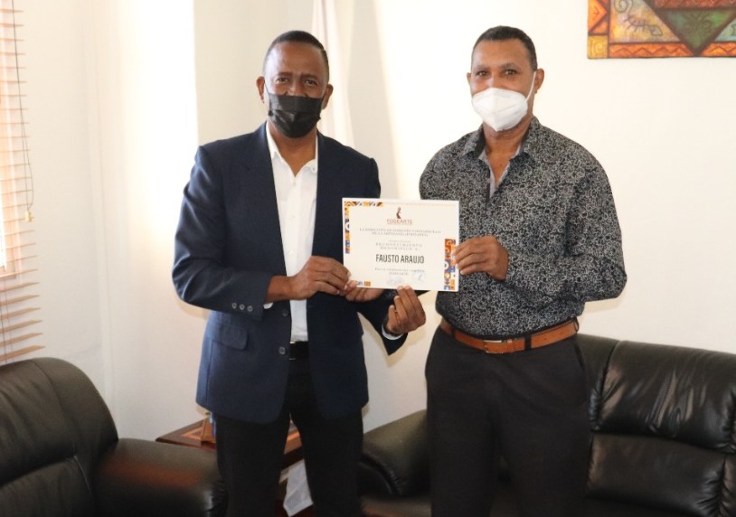 El Director General de FODEARTE, Ramón Guillén, hizo la entrega de reconocimientos por su gran aporte al sector Artesanal a los señores, Fausto Araujo y Juan Puello. Ambos agradecieron al Director de la institución por el agasajo, así mismo resaltaron la labor de este al frente de FODEARTE, también calificaron de acertada la decisión del presidente de La República, Luis Abinader, de colocarlo como Director General de FODEARTE.