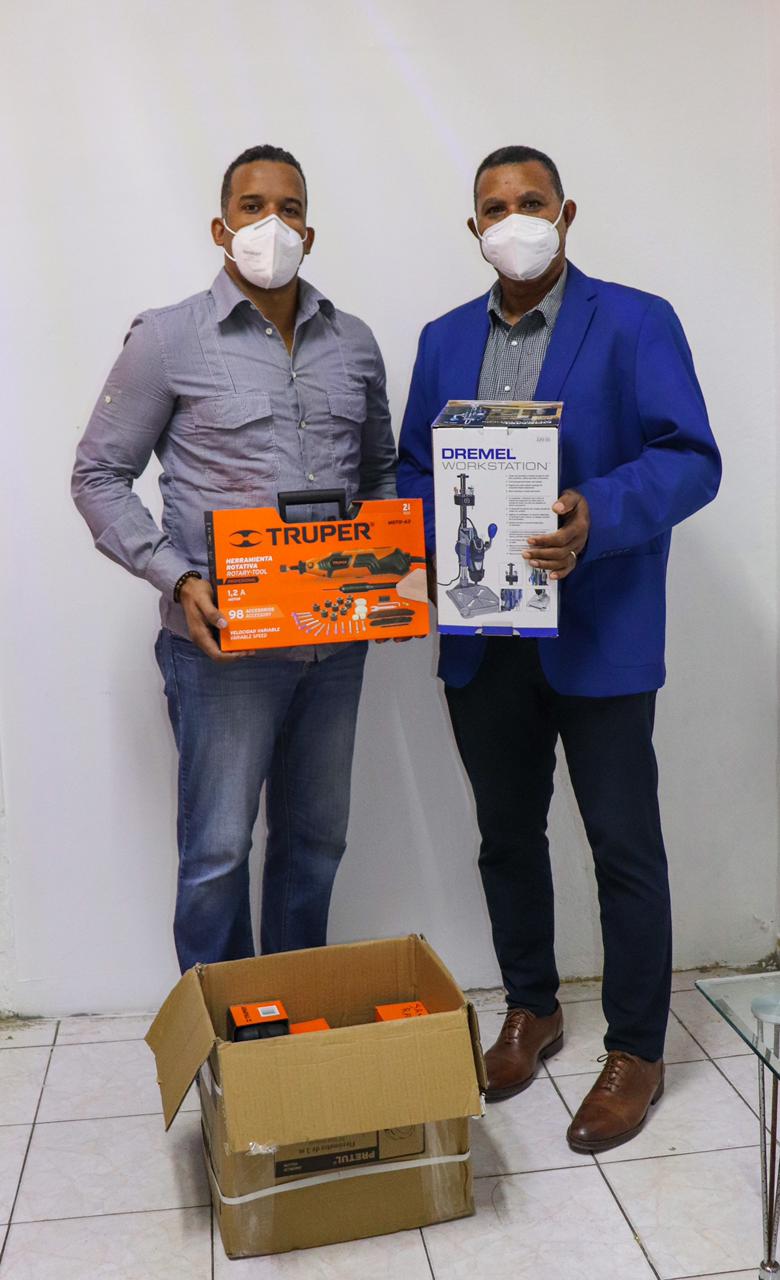 Las herramientas fueron entregadas directamente por el Director General de FODEARTE, el maestro y artesano Ramón Guillén, al señor Ramírez en las instalaciones de la institución, cuyo taller está ubicado en el sector de Villa Juana, Distrito Nacional. Entre los equipos entregados figuran un Dremel, un taladro, una caladora, una pistola de calor y una engrapadora neumática, los cuales les ayudarán a mejorar el proceso de producción que hasta ahora eran elaboradas manualmente en su totalidad.