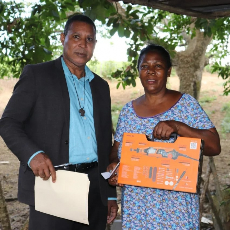 La herramienta fue entregada directamente por el Director General de FODEARTE, el maestro y artesano Ramón Guillén, a la Artesana ,en la comodidad de su hogar, ubicado en la comunidad de Las Aromas, municipio de Villa Tapia, provincia Hermanas Mirabal.