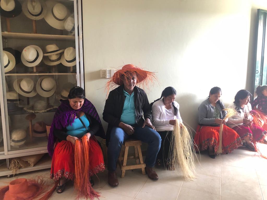 * Taller de guano o cana de mujeres Indígenas, las cuales crean los famosos sombreros Ecuatorianos " Panamá Hats".