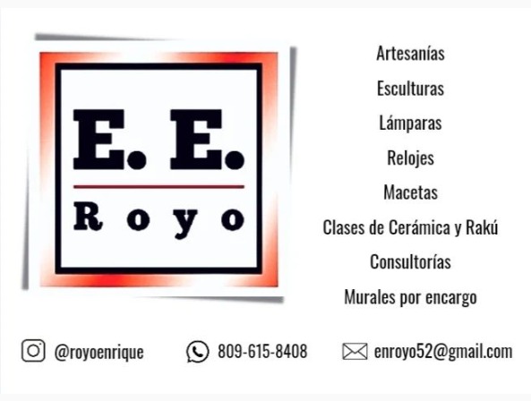 El Taller de ENRIQUE ROYO está ubicado en la Av. Ecológica , próximo al Parque Mirador Norte , los interesados pueden contactarle por las siguientes vías: Teléfono: +1 (809) 615-8408. Instagram: @royoenrique , Correo: This email address is being protected from spambots. You need JavaScript enabled to view it. .