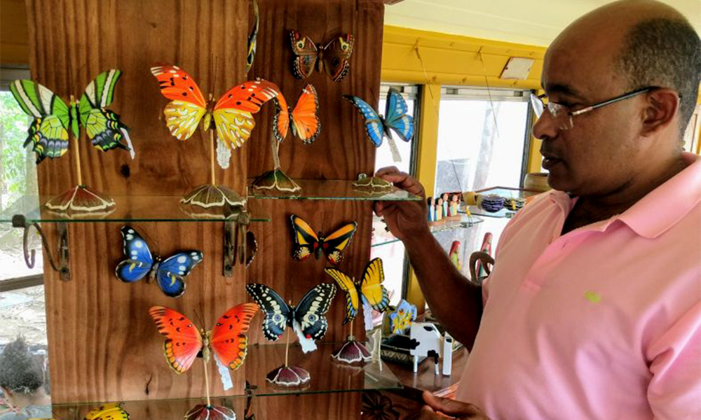 Las mariposas de jícara de coco de Moca son de la autoría del artesano Marino Brito: Poseedores Sello de Excelencia de la UNESCO.
