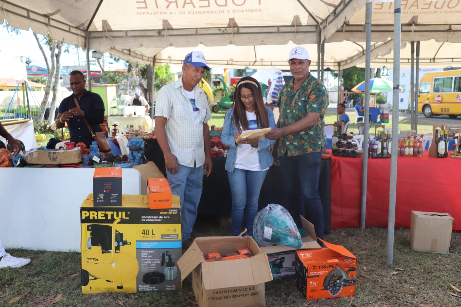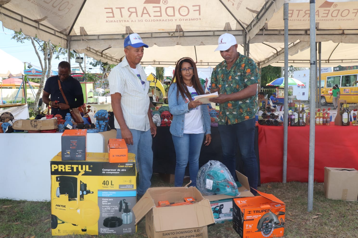 El Seibo, Rep.Dom.-La Dirección Nacional de Fomento y Desarrollo de la Artesanía (FODEARTE), realizó la entrega de varias herramientas a la Dirección de Cultura de la provincia de El Seibo al artesano, la cual es dirigida por la Sra. Solandia Guzmán Villa, con el objetivo de llevar a cabo talleres de formación artesanal en los rubros de reciclaje de neumáticos, tapicería, talabartería, entre otros.