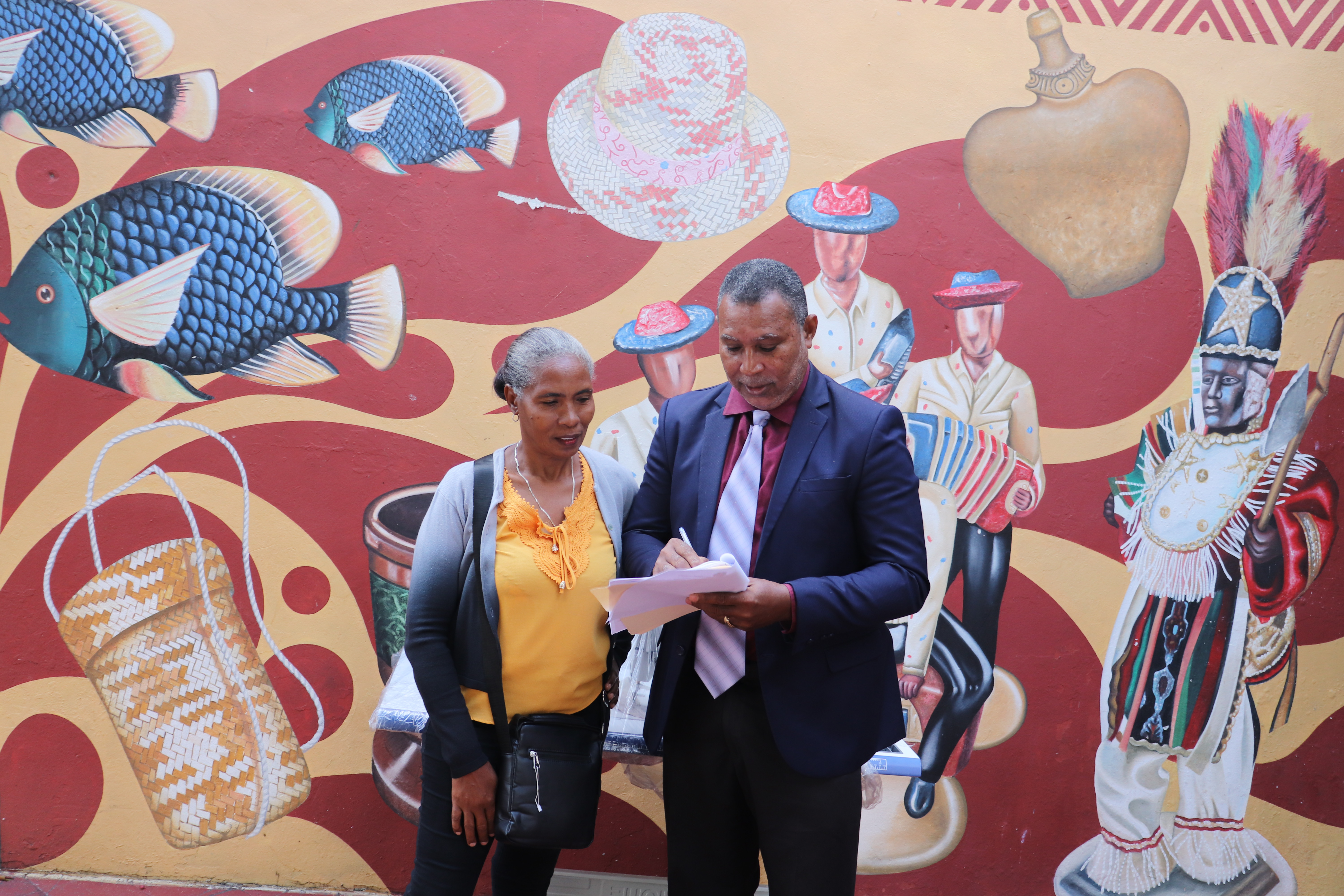 La máquina fue entregada por el Director General de FODEARTE, el maestro y artesano Ramón Guillén, a la artesana, quien se trasladó desde de su taller, el cual está ubicado en el municipio de Yamasá a la sede de la institución.
