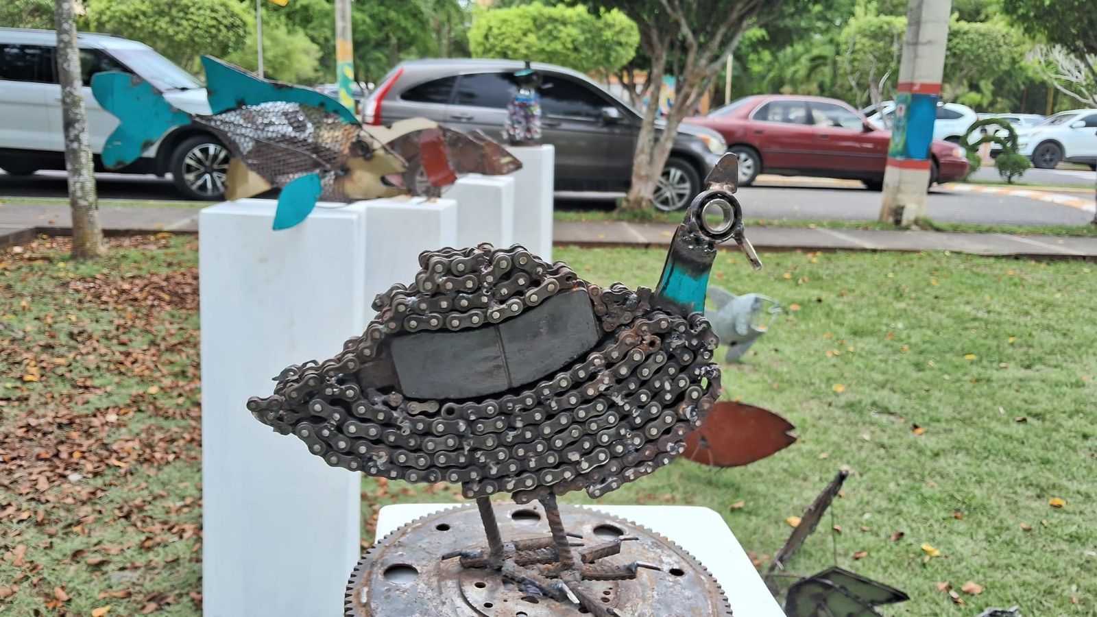 Este taller de capacitación cuya materia prima es el Metal reciclado es impartido por el Maestro Artesano Hamlet Báez Mir, el cual tiene como propósito crear majestuosas piezas artesanales con chatarras metálicas desechadas, lo que contribuye al medioambiente y al desarrollo socioeconómico de los formados.