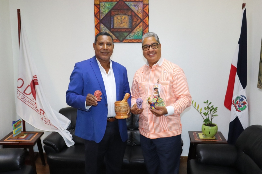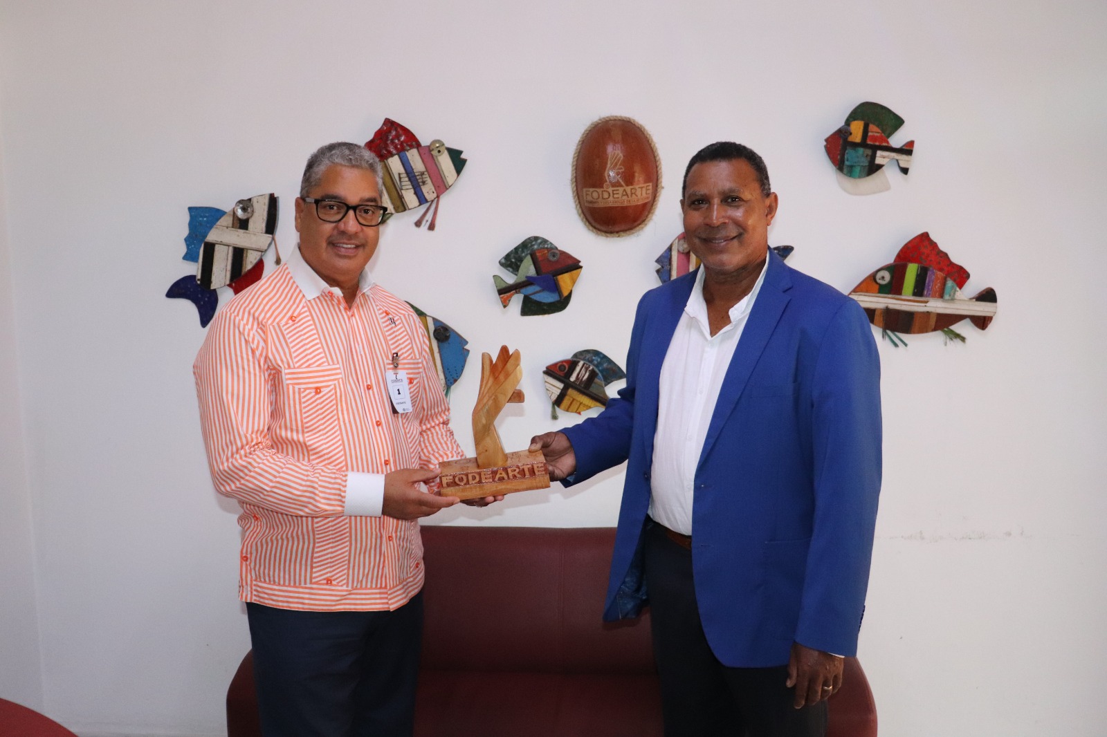 Santo Domingo, Rep.Dom.-El Director General de FODEARTE, Ramón Guillén, sostuvo un encuentro con el Director del Instituto del Dominicano y Dominicana en el Exterior (INDEX) en Boston, Oscar Guerrero, el objetivo de este encuentro fue estudiar la posibilidad de inaugurar una exposición permanente de artesanías en Lawrence en el 2024, así como también fomentar las bases para que los micros y pequeños talleres artesanales puedan vender sus piezas de añoranzas en las miles de bodegas dominicanas en Estados unidos, lo cual fortalecería el crecimiento de sus negocios por medio de la cultura productiva.