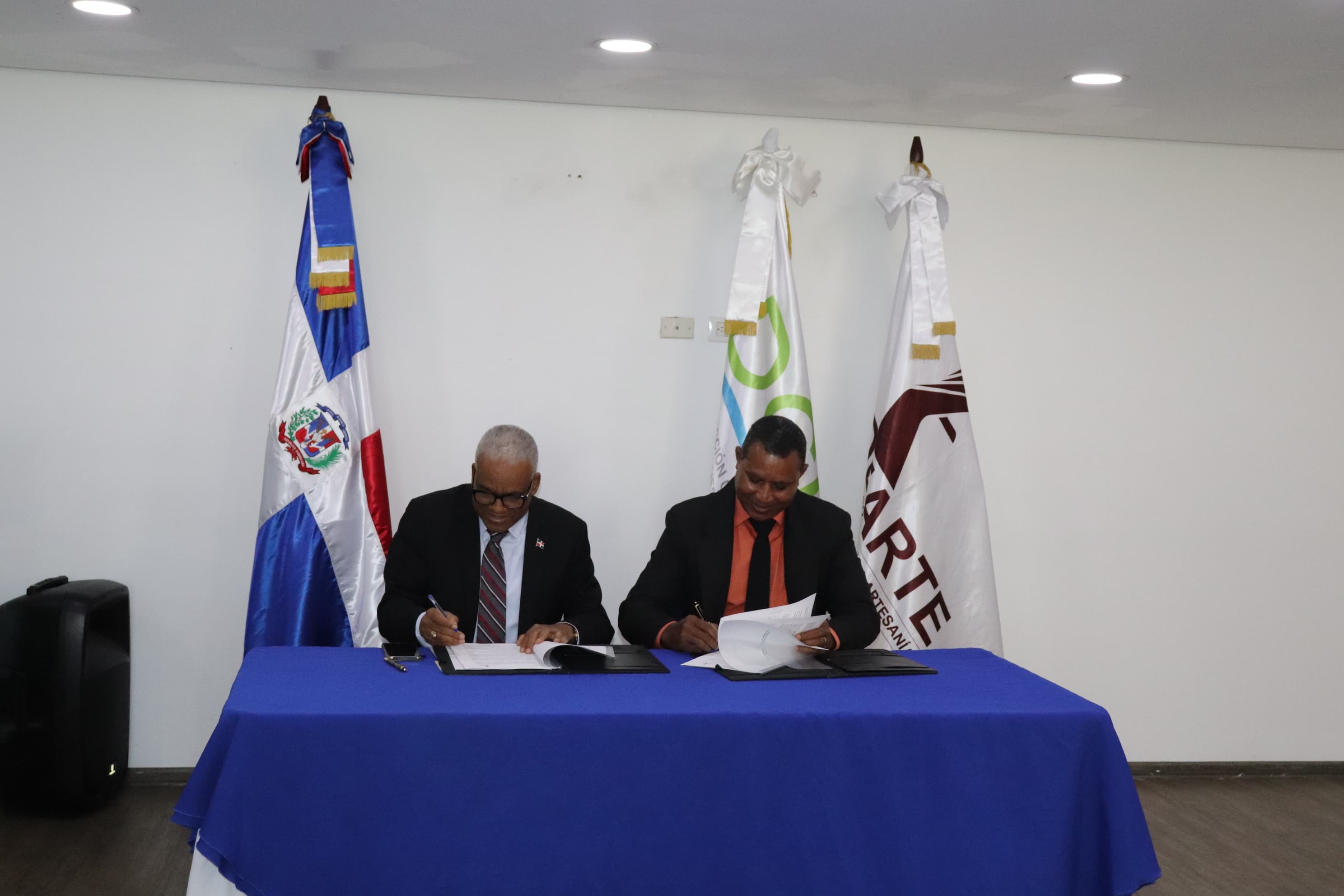 Santo Domingo, Rep.Dom.- La Dirección Nacional de Fomento y Desarrollo de la Artesanía (FODEARTE) y la Dirección General de Jubilaciones y Pensiones a Cargo del Estado (DGJP), suscribieron un convenio de cooperación interinstitucional, basado en el más alto sentido de solidaridad e interés de colaboración reciproca para compartir propuestas y prácticas de carácter educativos y humanitarios, dirigidas de manera específica a los pensionados y sus descendientes, a fin de que puedan generar ingresos adicionales a su pensión; además, estos programas y capacitaciones en materia artesanal les servirán como terapia ocupacional, logrando mantener su autonomía, independencia y calidad de vida.
