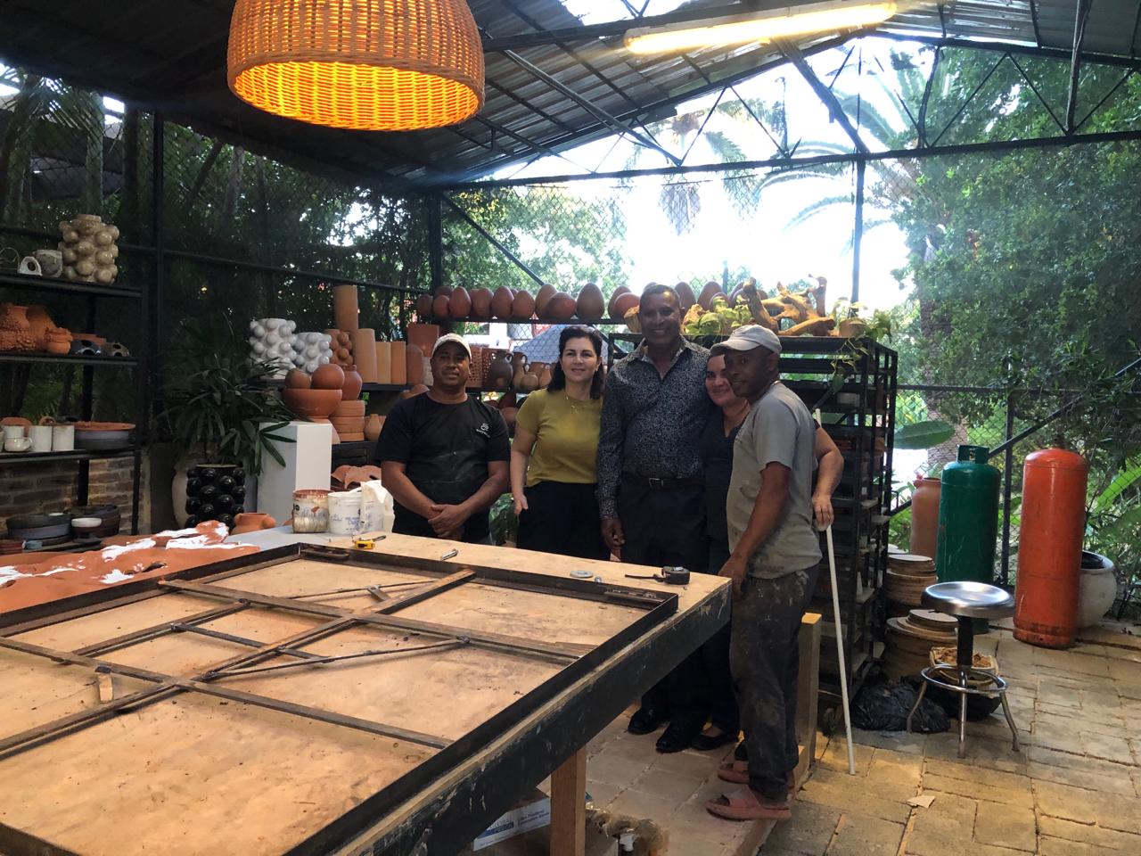 2- Más tarde, Guillén realizó una visita muy especial al taller de alfarería que en estos momentos está transformando el barro tosco en obras de arte y no es para menos, pues cuenta con la colaboración técnica de Iconos del sector como los grandes maestros artesanos, Thimo Pimentel, Enrique Royo, Radhame Carela, Ignacio Ramírez (Taller Ignacio) y un equipo de torneros de los más disciplinados del país, en compañía de su hija. Nos referimos a la entusiasta amante del barro, óxidos y engobes Dochy Santos.