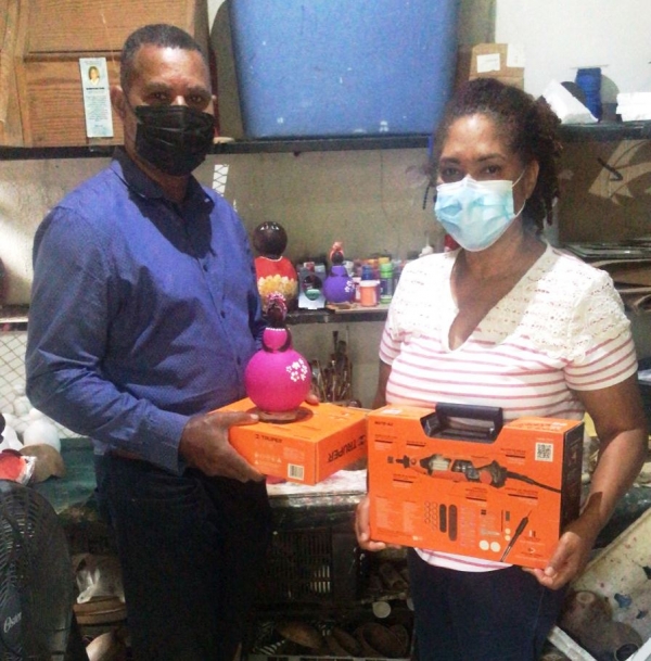 Santo Domingo, Rep.Dom.-La Dirección Nacional de Fomento y Desarrollo de la Artesanía (FODEARTE), realizó entrega de herramientas a la artesana Eladia Ruiz, quien elabora preciosas marchantas, utilizando como base higüeros de diferentes puntos del país, con el objetivo de hacer más cómodo, rápido, productivo y mayor calidad las artesanías que realiza la artesana en su taller, ubicado en el Edén de Villa Mella.